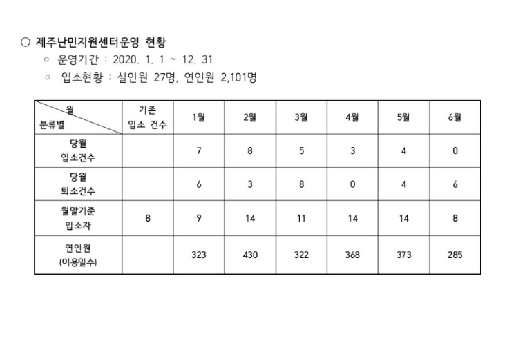 제주난민지원센터 이용현황