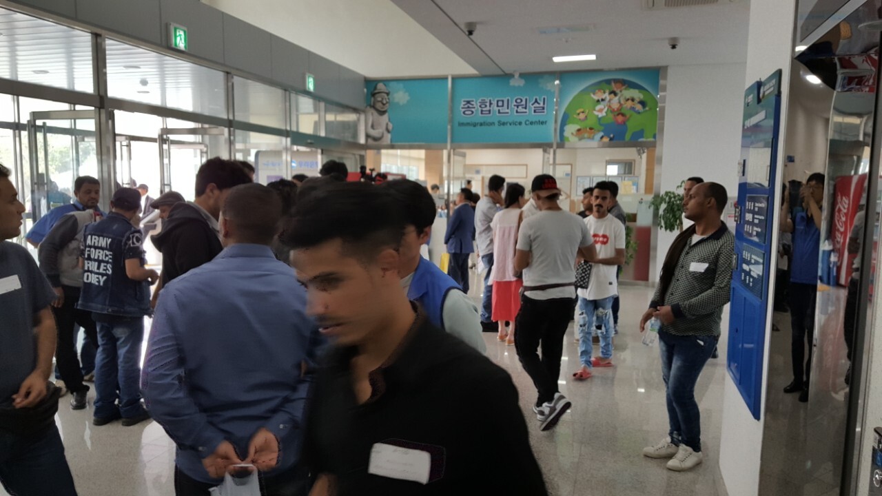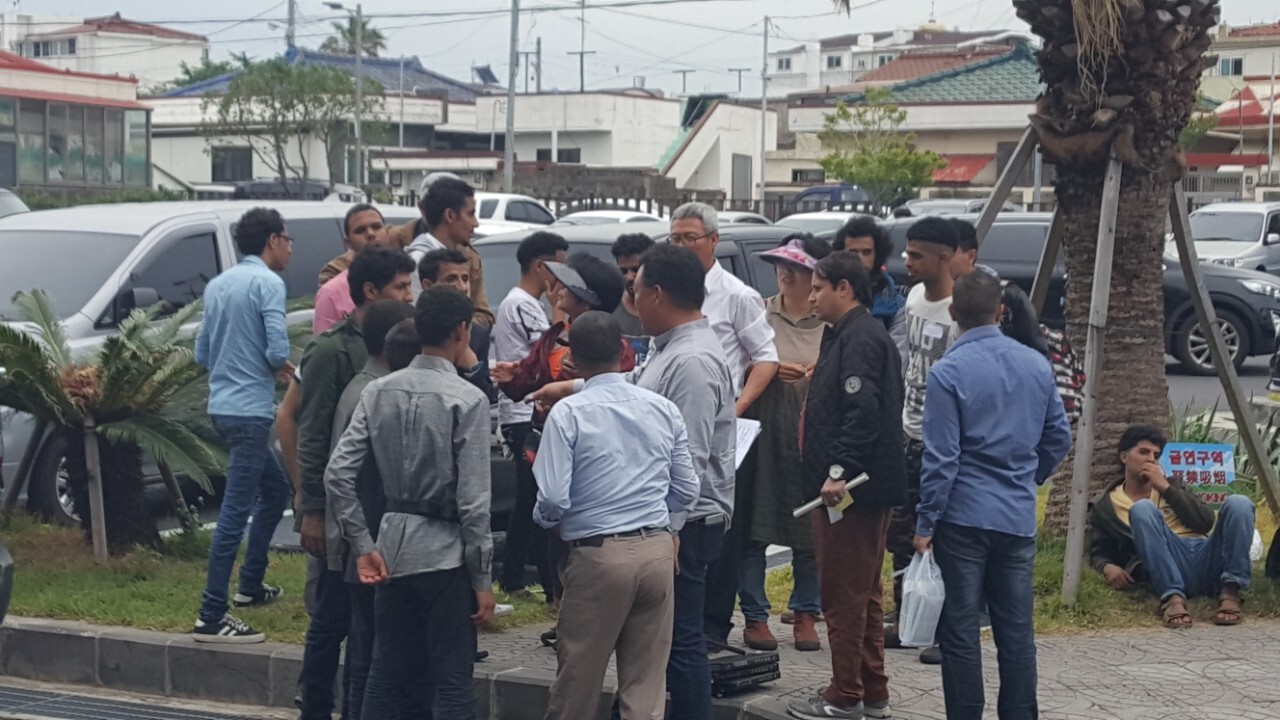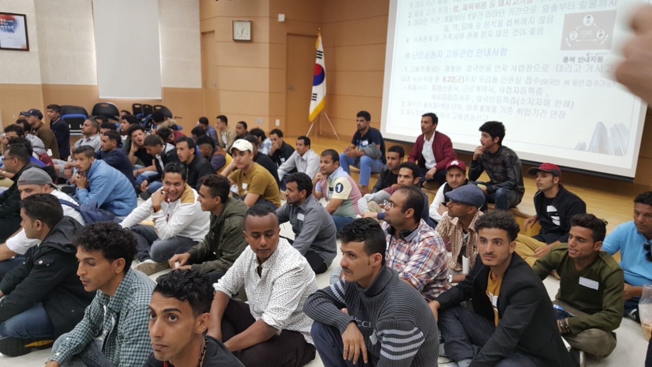 지금 제주출입국외국인청 제주 예멘 난민신청자들의 취업 설명회 현장입니다
